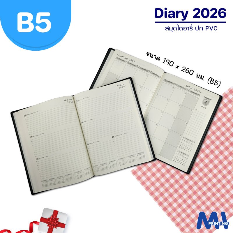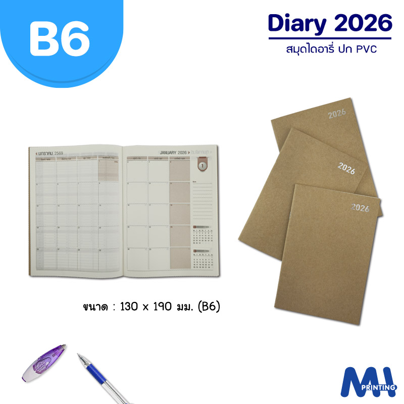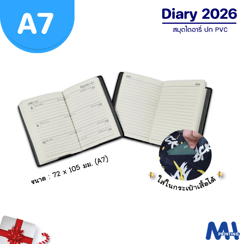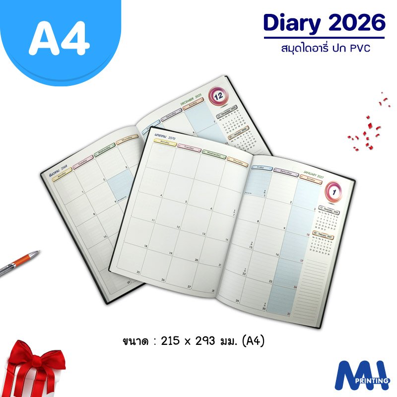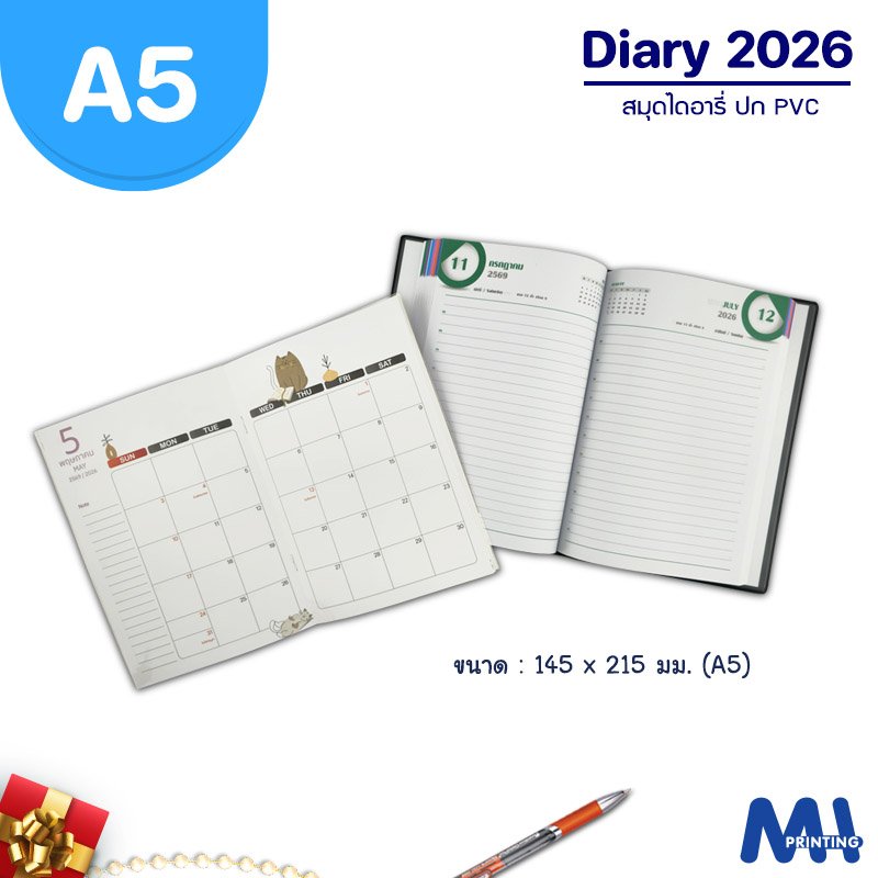 สมุดไดอารี่ประจำปี 2569 (2026) ปก PVC ใช้สำหรับจดบันทึกส่วนตัว ปฏิทิน วันหยุดประจำปี เบอร์โทรศัพท์ที่สำคัญ ตารางแผน และอื่นๆ มีหลากหลายขนาดให้เลือก